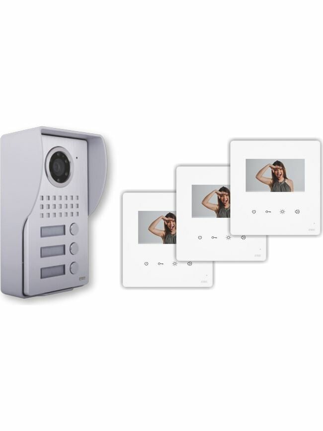 Kit εισόδου πόρτας Θυροτηλεόραση 1εισ. 3εσωτ. Ασημί-Λευκό